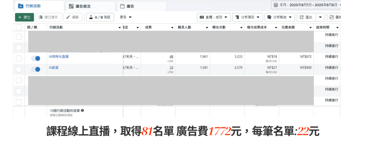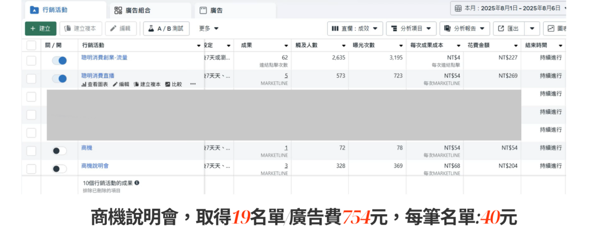 結果只有追蹤數,沒有諮詢數;偶爾有人來問,也是已讀不回。