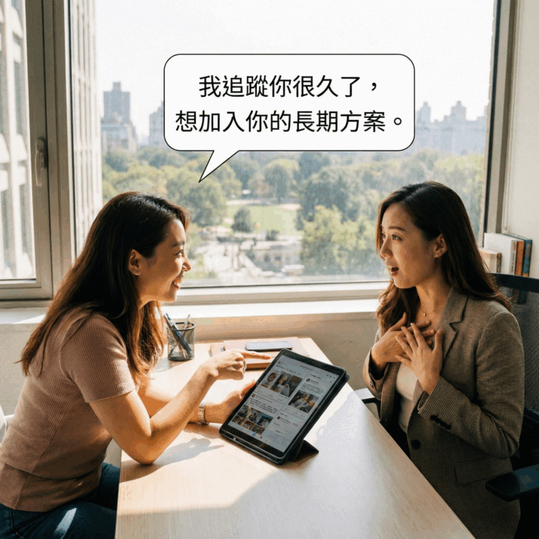 不再被追問『產品多少錢』。客戶在首次諮詢就對你說:『我追蹤你很久了,想加入你的專屬方案。』